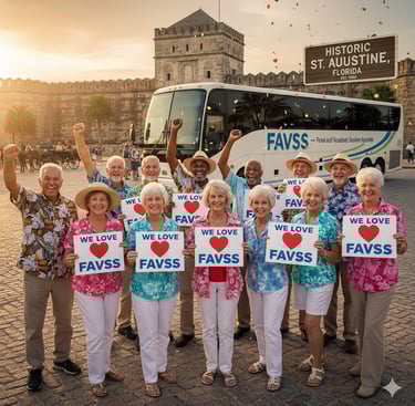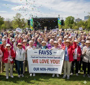 At FAVSS – Food and Vacations Seniors Specials Inc., we believe life isn’t just about surviving—it’s about living. That’s why we create fun, memorable experiences for seniors and veterans who too often face isolation, loneliness, and limited opportunities.
