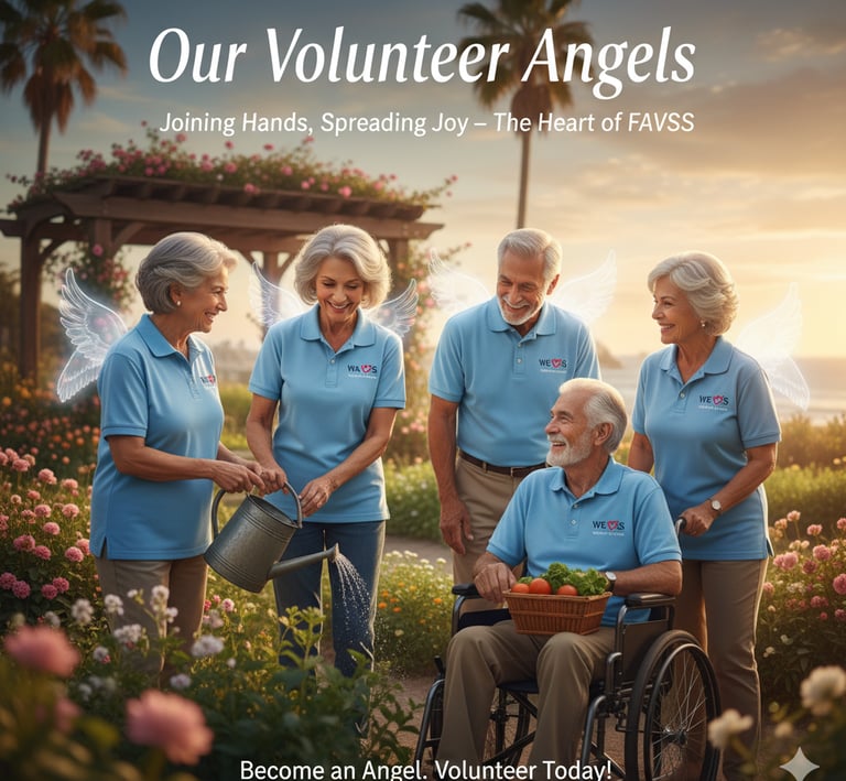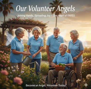 At FAVSS, we believe true change begins with wonderful people willing to help. Our Volunteer Angels are the life and heart of our missions, and their kind souls offer their time, energy, and compassion to seniors and veterans to help bring joy into their lives.